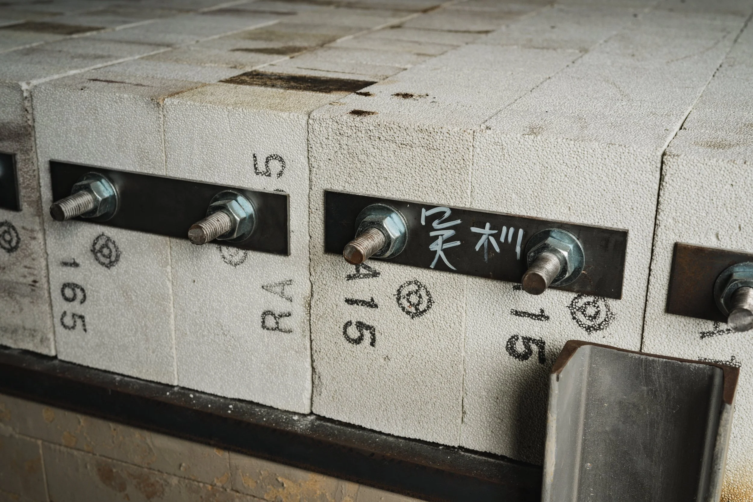 Meng Che had made a pad, put the steel butchering up and laid the first 11 layers of brick when we arrived at Jing Clay Art Formosa. We therefore had a headstart and had to retrofit and work from the dimensions already in place.